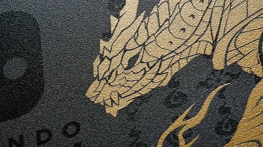 Big beastie Magnamalo is printed in gold on the console dock, while other Monster Hunter designs feature on its rear side, as well as on both Joy-Con. The console box also contains download codes for a copy of Monster Hunter Rise, its bonus content and its Deluxe Kit DLC.